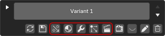 Per variant feature that allows you to transfer the selected object’s Data, Materials, Modifiers, Particle Systems or Animations to the variant(s) of your choice. Select any object and use the corresponding transfer buttons in the receiving variant’s header. Note that Data transfer requires enabling toggles prior to transfer.